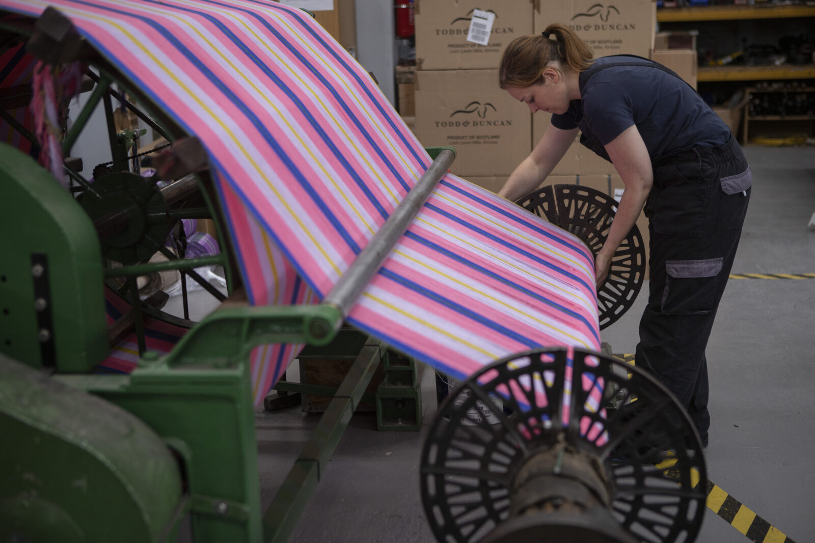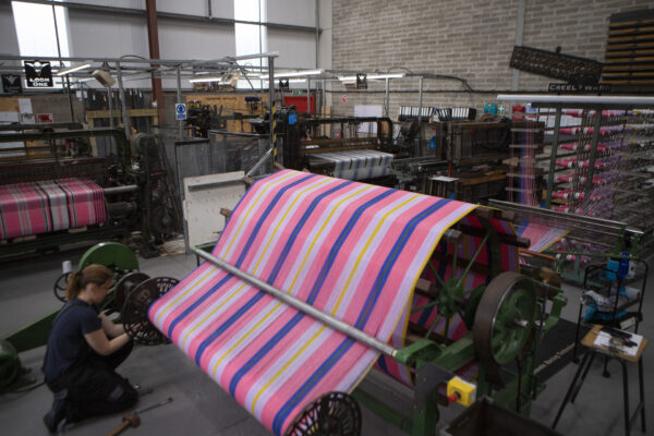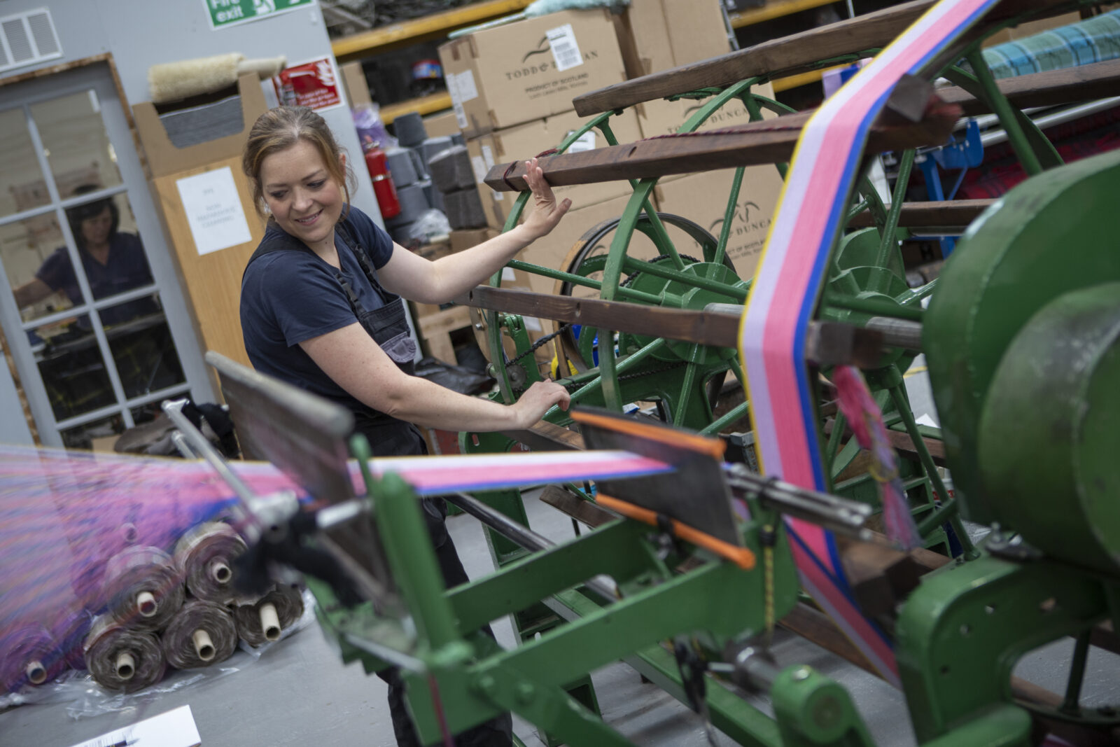This tartan was created in the name of Alan Cumming and Miriam Margoyles to celebrate their 2021 ‘Lost in Scotland’ tour spent reconnecting with their roots… and visiting our mill being part of it. Aliam is a weaving together of their names, which reflects the warp and weft of a tartan cloth.