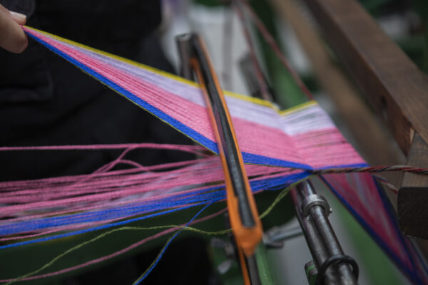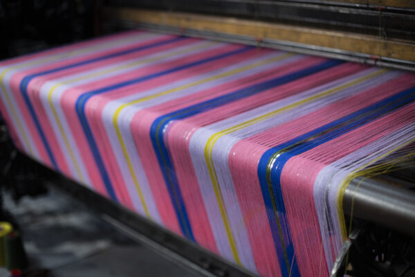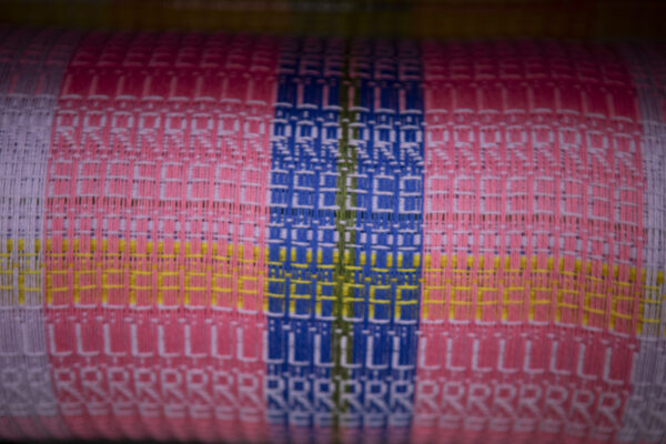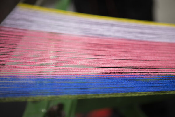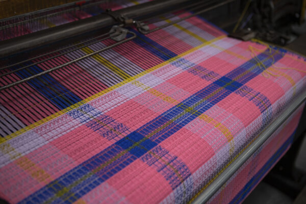 The threadcount consists of Alan and Miriam’s birth years ’65 and ’41 along with 19 for the century. Also 45 threads make up the check, with 5 green threads surrounded by 20 blue on either side. This number is for various reasons all of which relate to their shared passion for Scotland and the important causes that unite them.