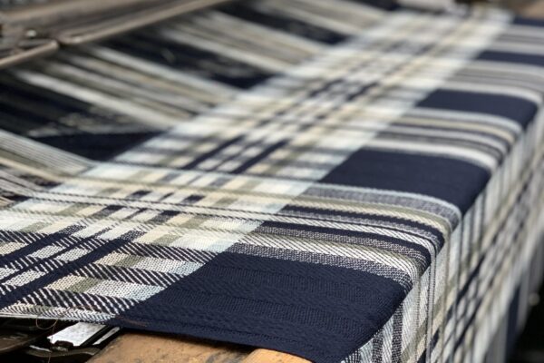 We have designed 2 tartans for Navygrey that are inspired by the Scottish landscape. 'Coast' includes coastal blues, and 'Flora' portrays hillside floral shades, both of which have been paired with the company’s colours, navy and grey.